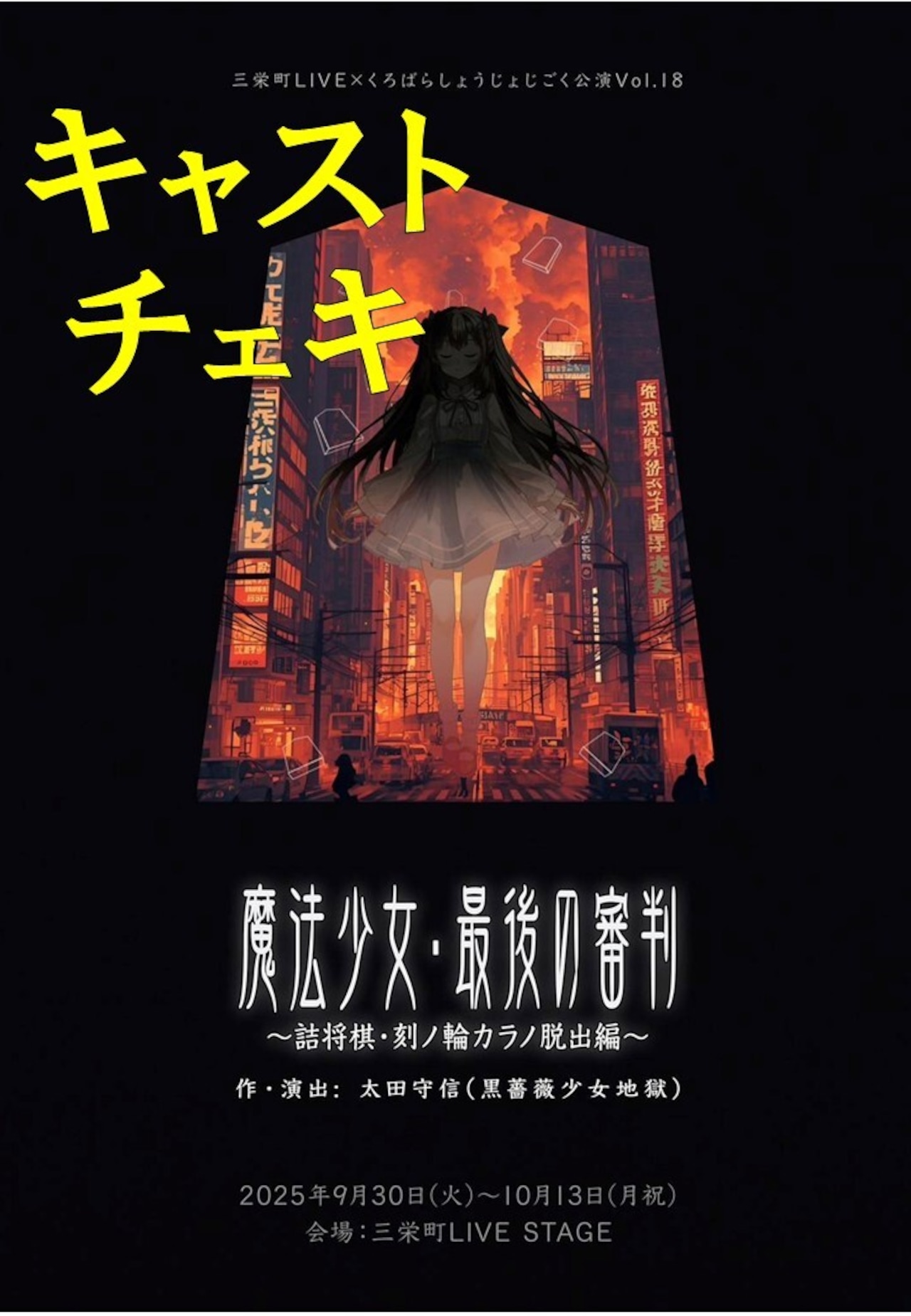 三栄町LIVE×くろばらしょうじょじごく公演Vol.18『魔法少女・最後の審判 ~詰将棋・刻ノ輪カラノ脱出編~』のキャスト衣装チェキです。